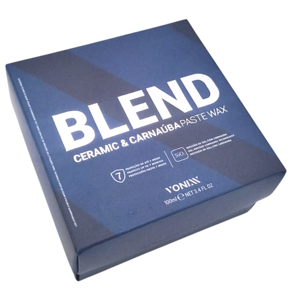 BLEND CERAMIC & Carnaúba PASTE WAX é uma cera híbrida composta por SiO2 e pela mais pura carnaúba tipo 1, protege a superfície veicular por até sete meses. O produto promove a resistência cerâmica, brilho quente da carnaúba e hidrorrepelência.