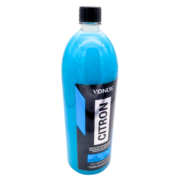 O Citron Shampoo Desengraxante 1,5L da Vonixx é ideal para limpeza profunda de veículos, removendo sujeiras e resíduos de graxa com eficiência.