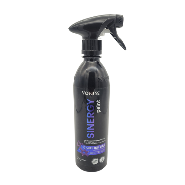Sinergy é coating spray de fácil aplicação desenvolvido para pintura de automóveis e tem como função proteger a pintura por até 12 meses. O diferencial desse produto é a sua tecnologia exclusiva Vonixx, CARBOSILOXY, onde o elemento químico carbono age em sinergia com o silício e com isso, forma um filme resistente e super hidrofóbico e tem um tempo de cura menor, em média 60 minutos. Além disso, esse produto reduz o atrito, minimizando riscos e promovendo um excelente brilho.