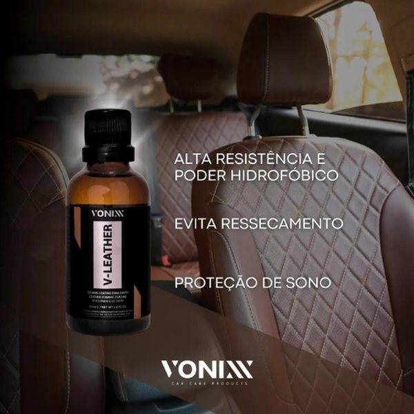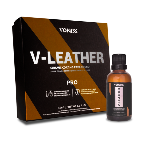 V-Leather Pro é um coating para couro, desenvolvido à base de nanopartículas derivadas do silício, com alta resistência e poder hidrofóbico. V-Leather Pro forma um filme invisível de alta flexibilidade que protege o couro por até 1 ano, inclusive contra raios UV. Além disso, evita a proliferação de fungos e bactérias, diminui marcas causadas por jeans, melhora a resistência em relação ao atrito, age contra o ressecamento do couro e ajuda a evitar manchas causadas por líquidos e sujeiras convencionais. O produto torna o couro super macio, não altera a cor original e permite que o material respire.