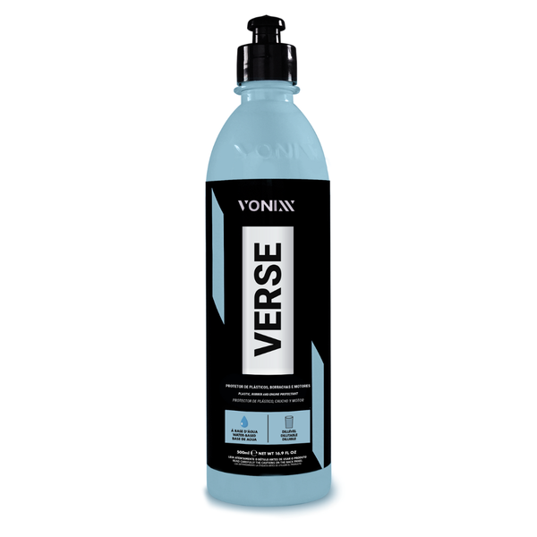 VERSE é um renovador de plásticos à base d´água que condiciona e protege o material contra raios UV. Pode ser usado em plásticos (pára-choques, painéis, laterais de portas) borrachas (caixas de rodas, mangueiras do motor, pneus e borrachas de portas) e superfícies metálicas, em especial o compartimento do motor e chassis. VERSE pode ser utilizado em diversas diluições, a depender da superfície e característica requerida.